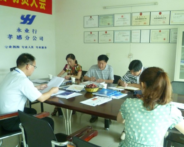 2011年3月8日,省委考评组领导莅临永业行检查党建工作 2011-03-08  3月8日,由石首市委组织部副部长程学书率队的省委考评组莅临永业行检查指导党建工作。  永业行党委书记、董事长方国成,党委副书记、总裁潘世炳,党委副书记、副总裁靳剑辉,党委委员、助理总裁田新丑热情接待了省委考评组领导。考评组观看永业行宣传片后,方董向考评组领导详细介绍了公司的基本情况,汇报了永业行党建工作;潘总对考评组领导的提问逐一作了解答和说明,并就企业党建和组织发展等问题向考评组提出了建议。考评组听取工作汇报并认真检查永业行党建工作有关资料后,对永业行党建工作、创先争优活动的开展予以了充分肯定。   武昌区委组织部副部长金光伟、区工 MORE