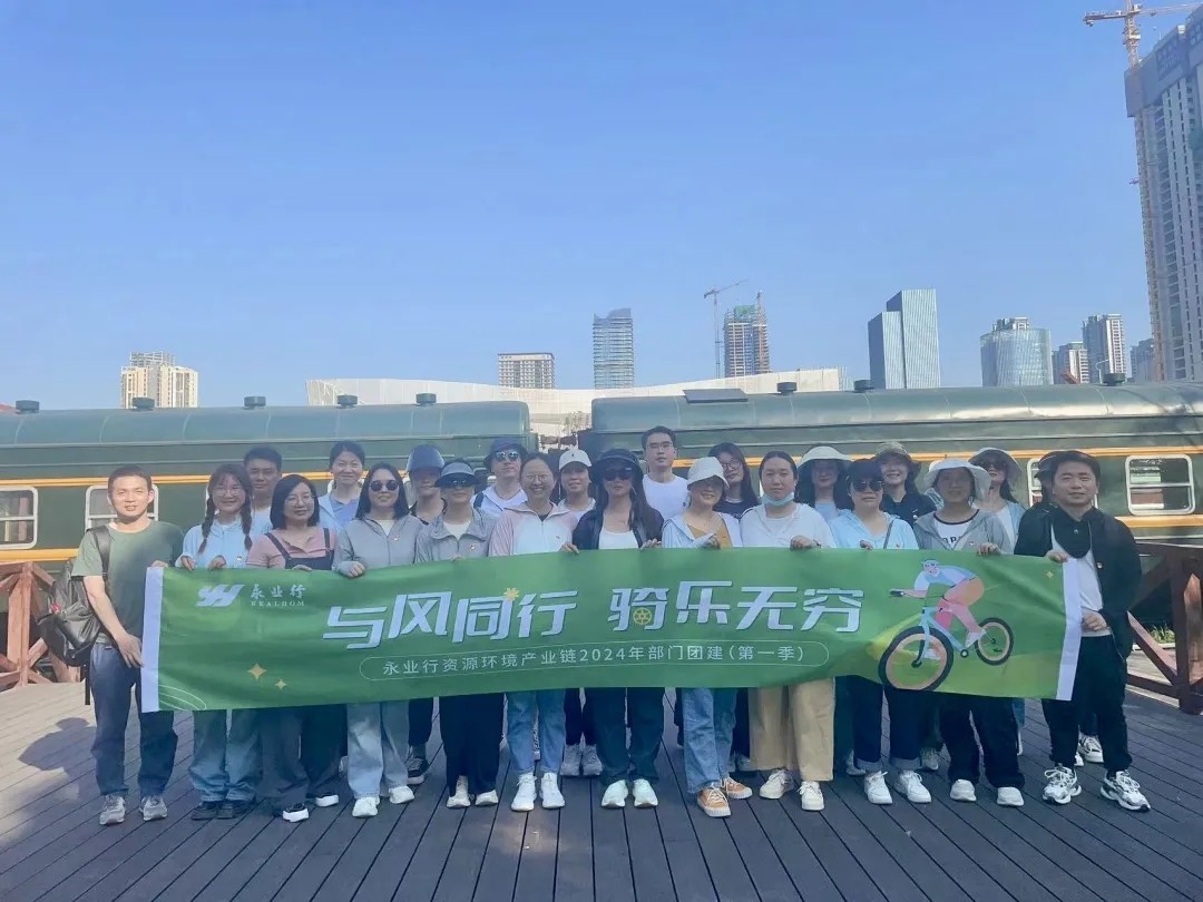 永业行资源环境产业链开展“与风同行 骑乐无穷”主题团建活动 2024-05-18 武汉首条空中骑行道——武昌文化生态长廊开放之际,2024年5月17日,永业行资源环境产业链20余名员工脚踏单车、丈量大地,共同参与了一场别开生面的“与风同行 骑乐无穷”的主题团建户外骑行活动。 武昌文化生态长廊全长13.46公里,依老武九铁路北环线路而建,跨越武昌、青山两个区。大家统一着运动装,配墨镜,贯穿青山公园、和平公园、四美塘文化公园等生态地标,一路草本葳蕤,繁花似锦,令人心旷神怡。大家感受着风穿过发间的温柔,看着树下斑驳的光影,哼唱着朗朗上口的歌曲,一路骑骑走走,一路欢 MORE